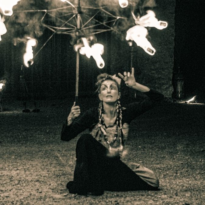 Al voltant de llur caldera màgica neix un ritual fora del temps, les danses de foc encantades i els sortilegis es succeeixen ; llegeixen el futur en les volutes de fum i les boles de cristall i s’enlairen sobre llurs escombres incandescents.